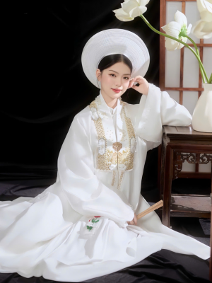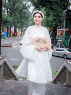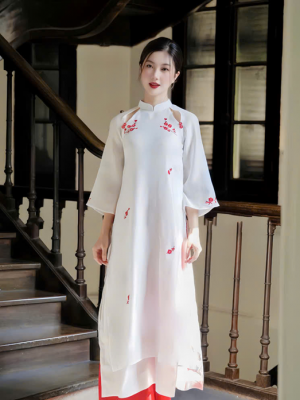 Áo dài trắng thêu hoa đỏ – 89k/ngày – SML