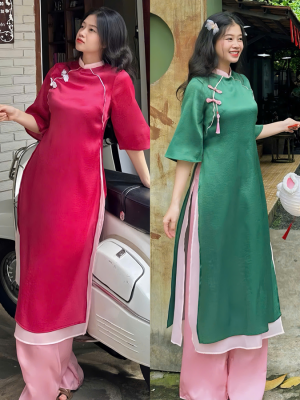 Sườn xám xanh kèm khoác – 89k/ngày – SML