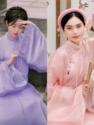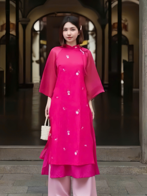 Áo dài voan hồng hoa trắng – 89k/ngày – SML