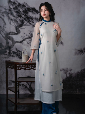 Áo dài voan trắng hoa xanh – 89k/ngày – SML