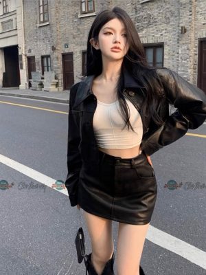 Khoác da đen croptop – 89k/ngày – freesize