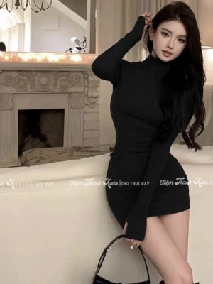 Đầm thun đen cổ lọ – 45k/ngày – freesize