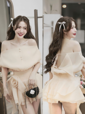 Đầm voan bóng bẹt vai- 89k/ngày – SM