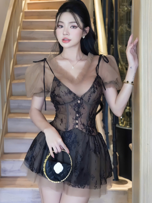 Set váy lưới đen yếm nâu – 89k/ngày – SM
