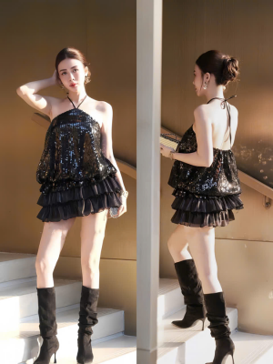 Đầm đen bling cổ yếm – 89k/ngày – SM