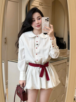 Đầm trắng sọc nút đỏ – 89k/ngày – SM