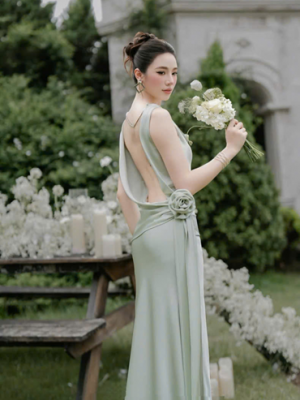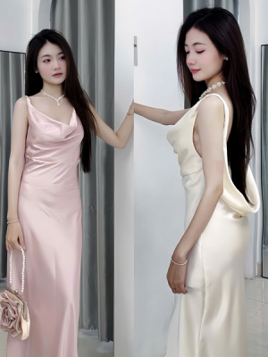 Đầm tiệc lụa hở lưng- 129k/lần thuê – SM