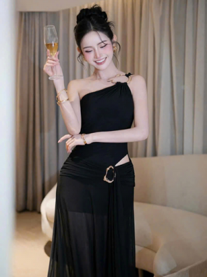 Đầm tiệc đen lệch vai – 129k/lần thuê – SM
