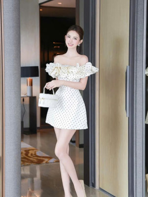 Đầm tiệc kem chấm bi – 129k/lần thuê – SM
