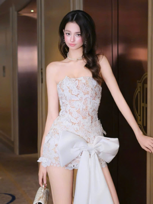 Đầm tiệc ren trắng phối nơ – 129k/lần thuê – SM