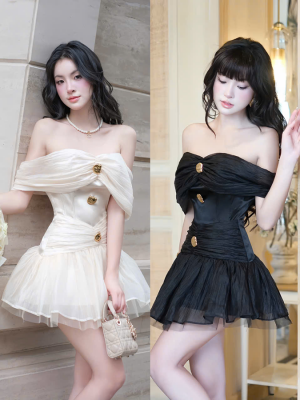Đầm tiệc lụa kem lệch vai – 129k/lần thuê – SM