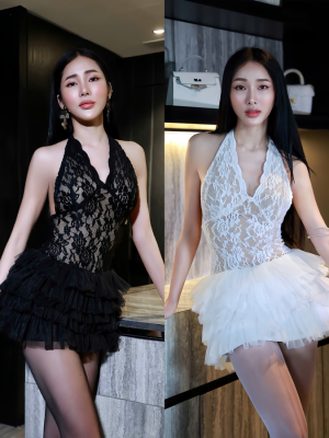 Đầm tiệc ren ngắn cổ yếm – 129k/lần thuê – SM