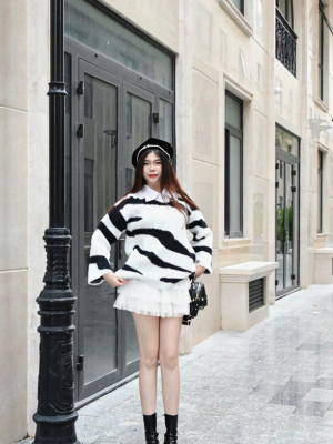 Set váy len sọc trắng đen – 135k/ngày – freesize