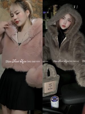 Khoác lông thỏ kèm nón – 89k/ngày – freesize