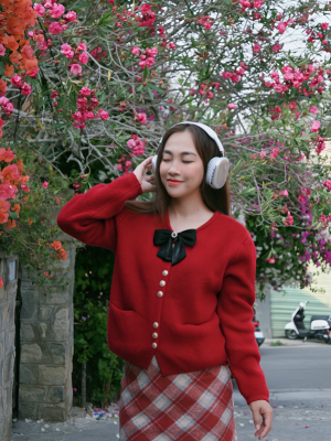 Áo len đỏ đính nơ – 80k/ngày – freesize – ở CN Thủ Đức