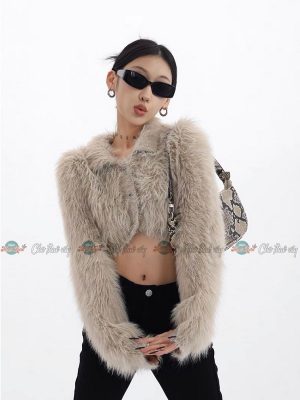 Khoác lông nâu form ngắn – 80k/ngày – freesize