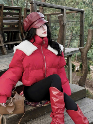 Khoác phao đỏ viền lông – 129k/ngày – Freesz