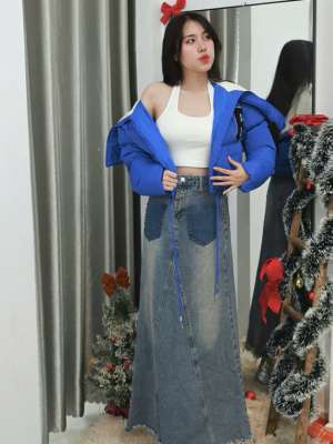 Set váy jean kèm khoác phao xanh – 169k/ngày – SM