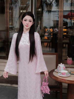 Áo dài hồng tay loe – Aguja – 59k/ngày – SML