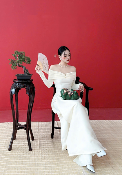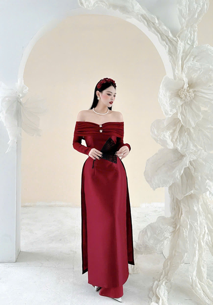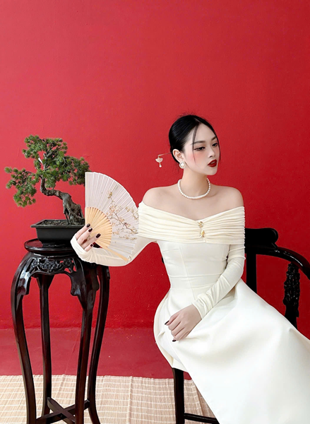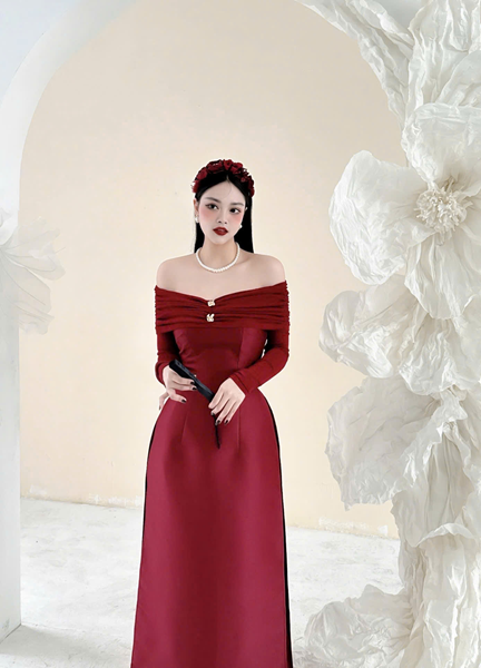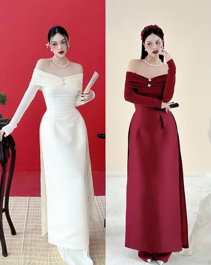 Áo dài bẹt vai tay dài – 89k/ngày – SM ( Màu kem 119k/1 ngày)