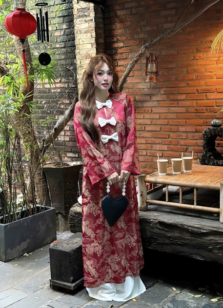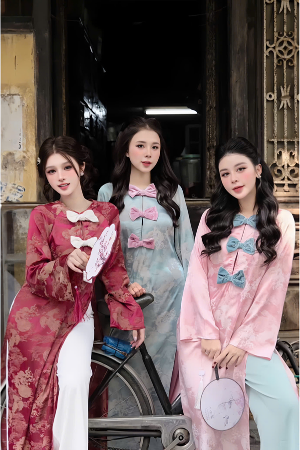 Áo dài gấm nơ nhung – 89k/ngày – SM