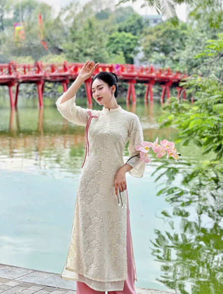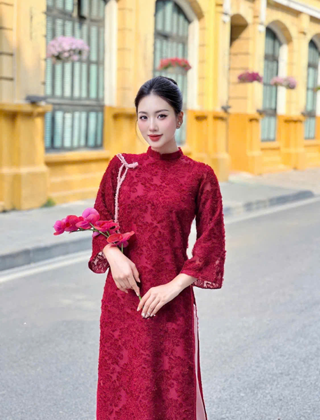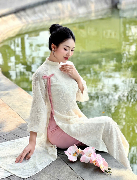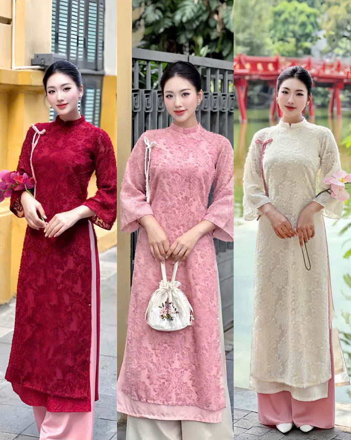 Áo dài lông vũ đính nơ – 89k/ngày – SML