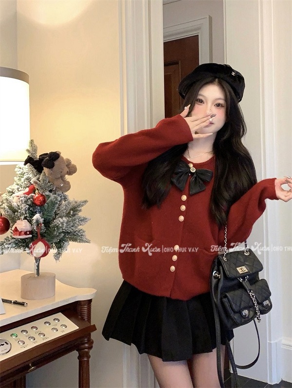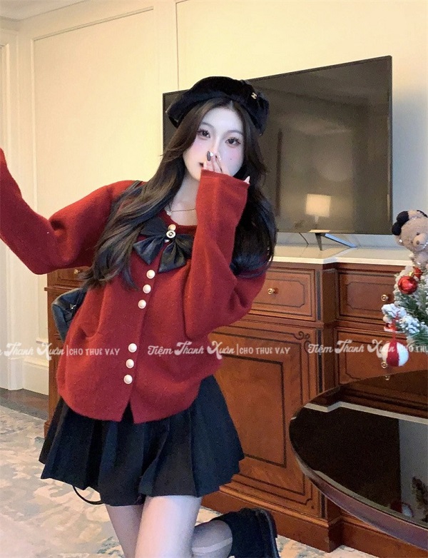 Áo len đỏ đính nơ – 80k/ngày – freesize – ở CN Thủ Đức