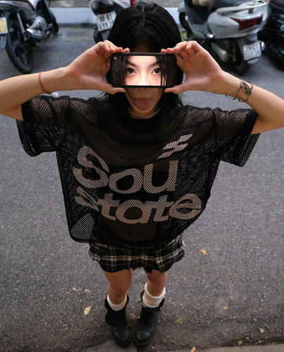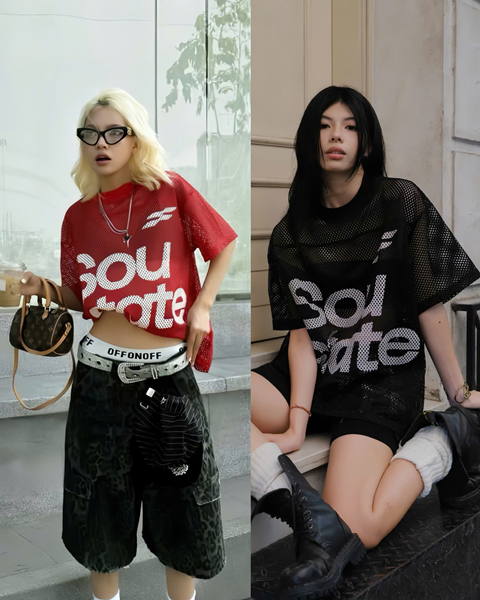 Áo lưới chữ trắng – Soustate – 70k/ngày – Freesize