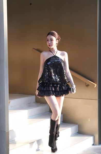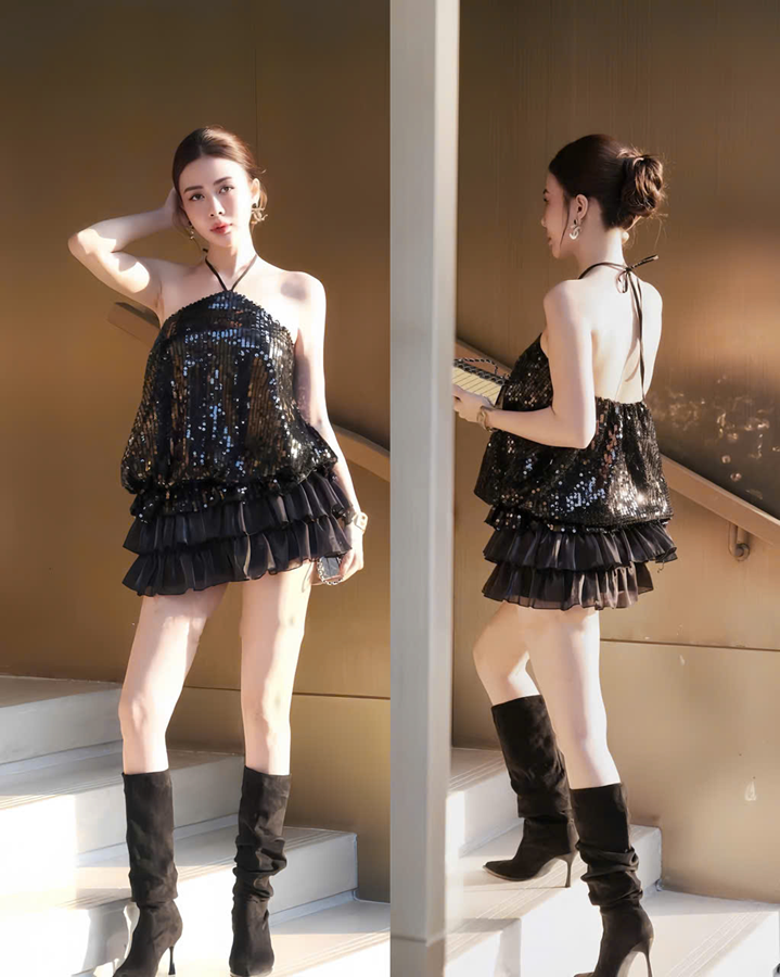 Đầm đen bling cổ yếm – 89k/ngày – SM