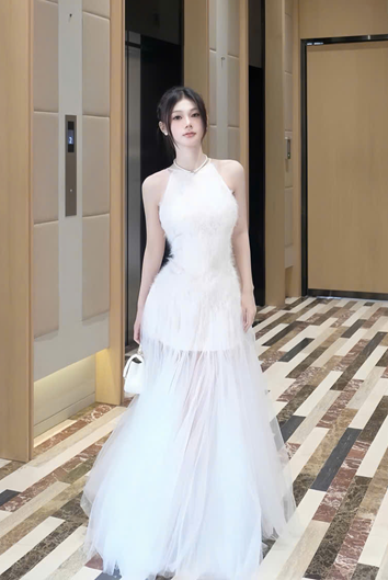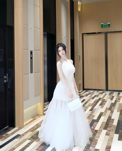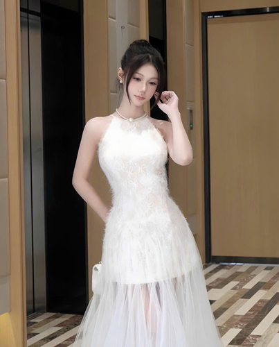 Đầm kem cổ yếm phối ren – 170k/lần thuê – SML