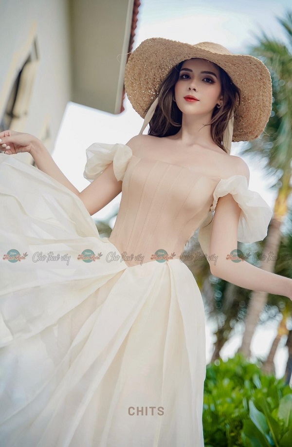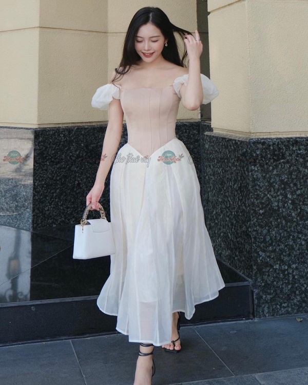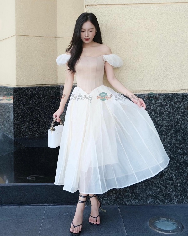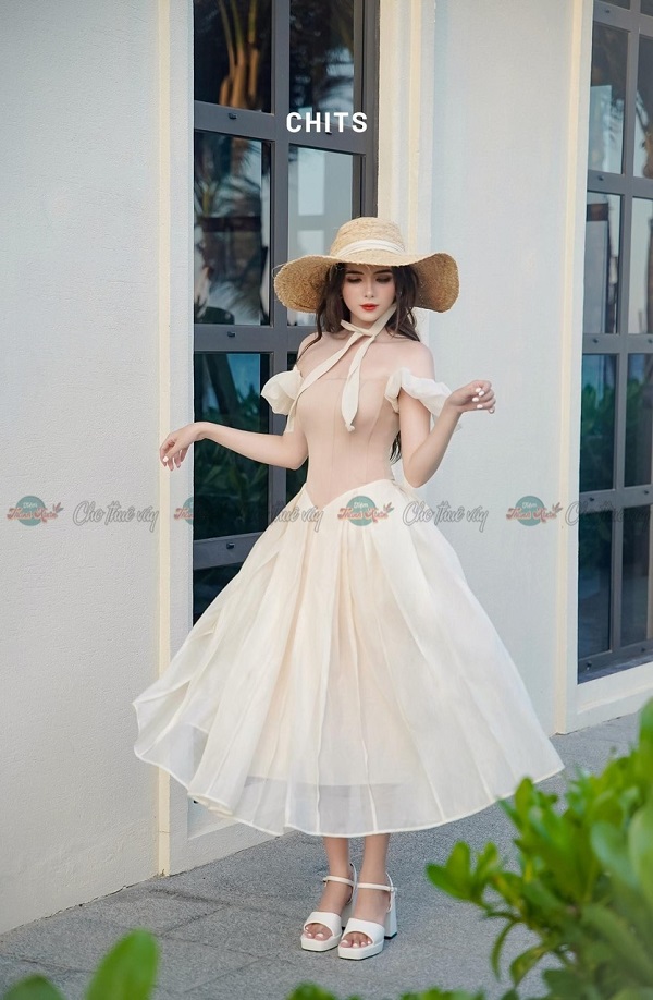 Đầm kem tay phồng – CHITS – 160/ngày – XS – ở CN Phú Nhuận
