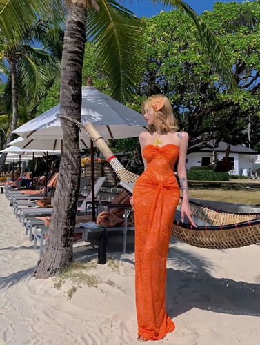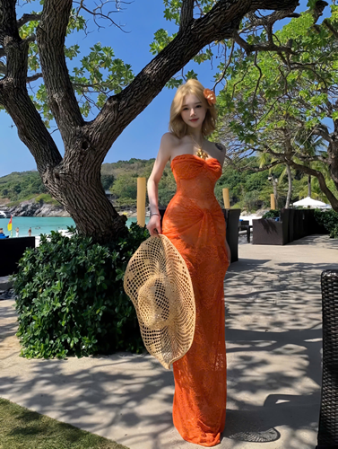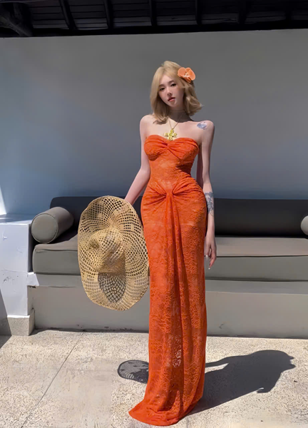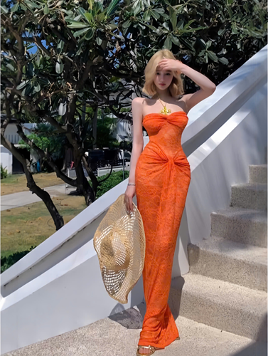 Đầm ren cam dúng eo – 89k/ngày – freesz