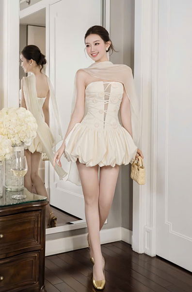 Đầm tiệc kem đính hoa – ChouChou – 170k/lần thuê – SM
