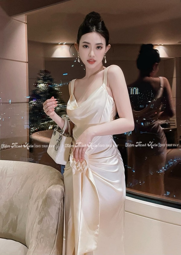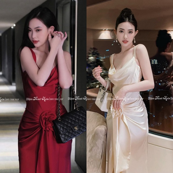 Đầm tiệc lụa hoa hồng – Chouchou – 170k/lần thuê – SM