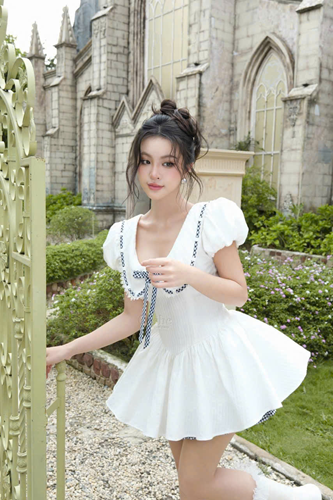 Đầm trắng viền bèo – Coshe – 130k/ngày – SM