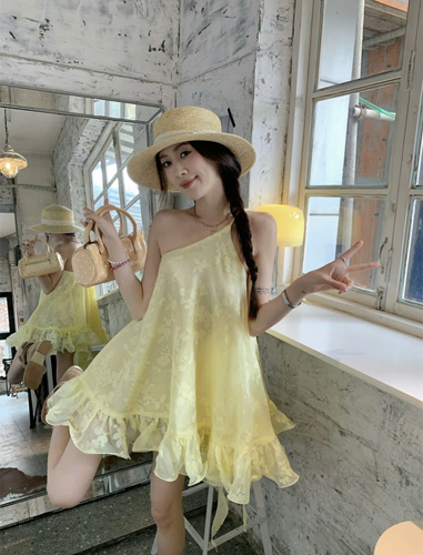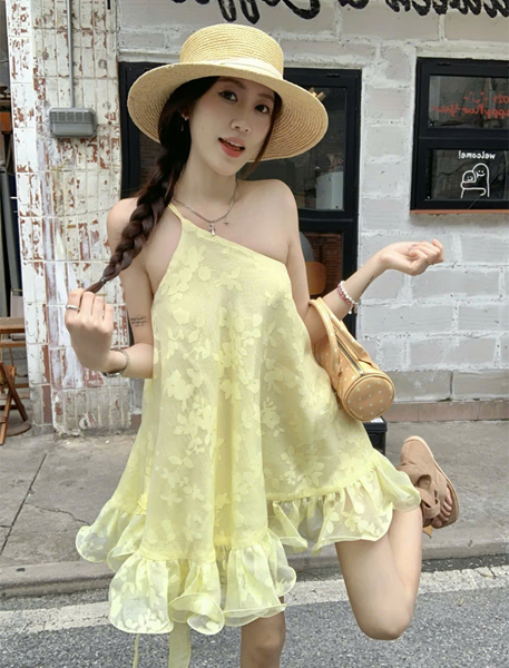 Đầm vàng lệch vai – 89k/ngày – SM