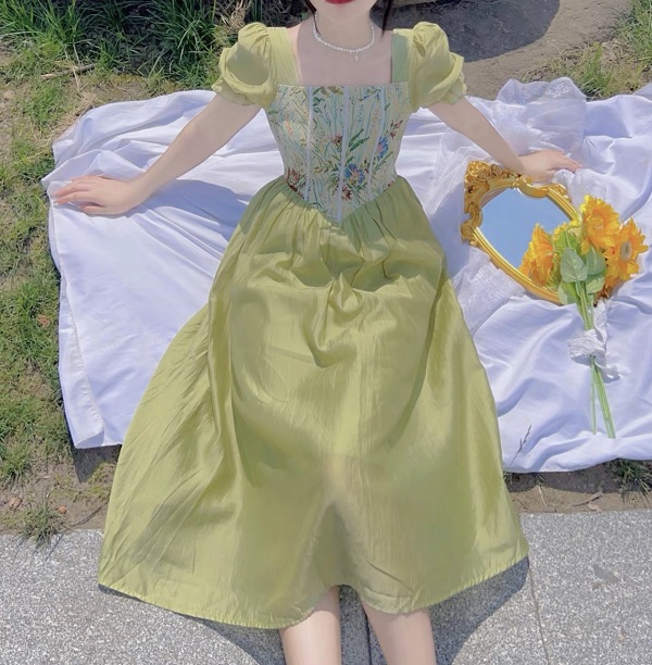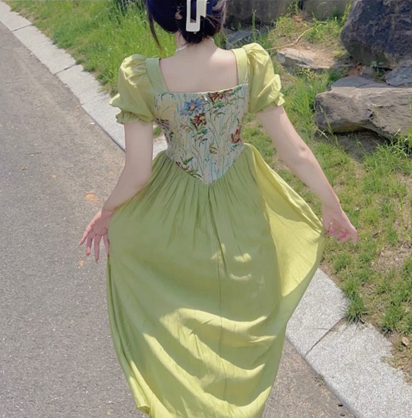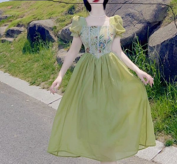 Đầm vintage xanh rêu – 89k/ngày – M – ở CN Phú Nhuận