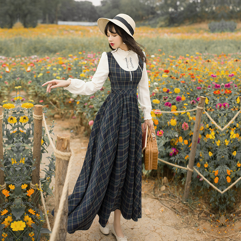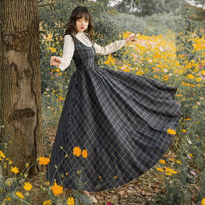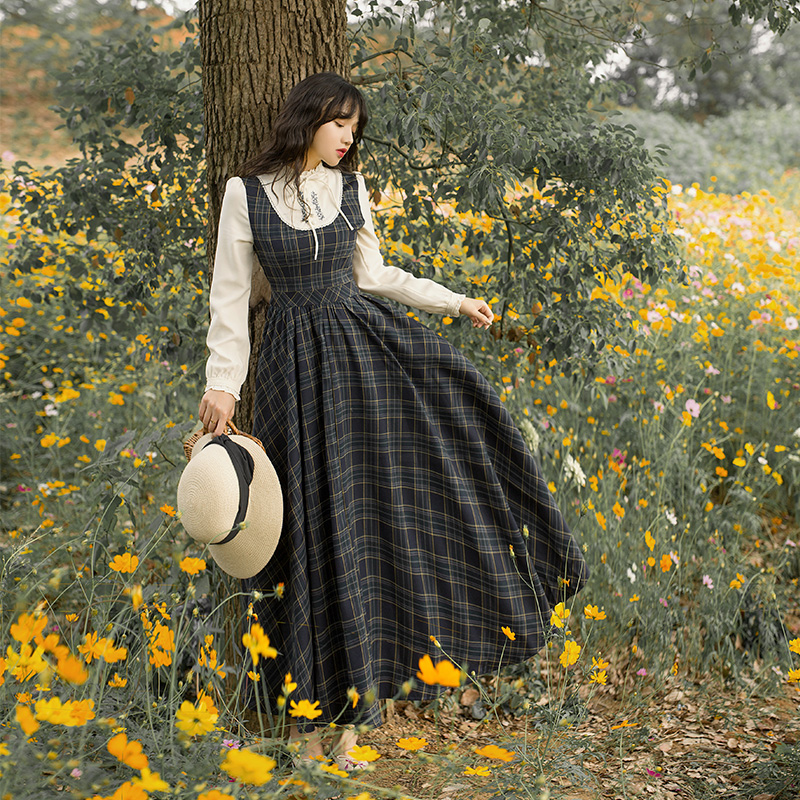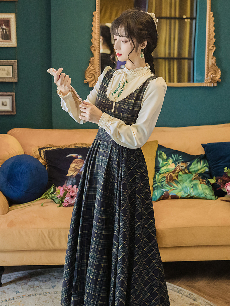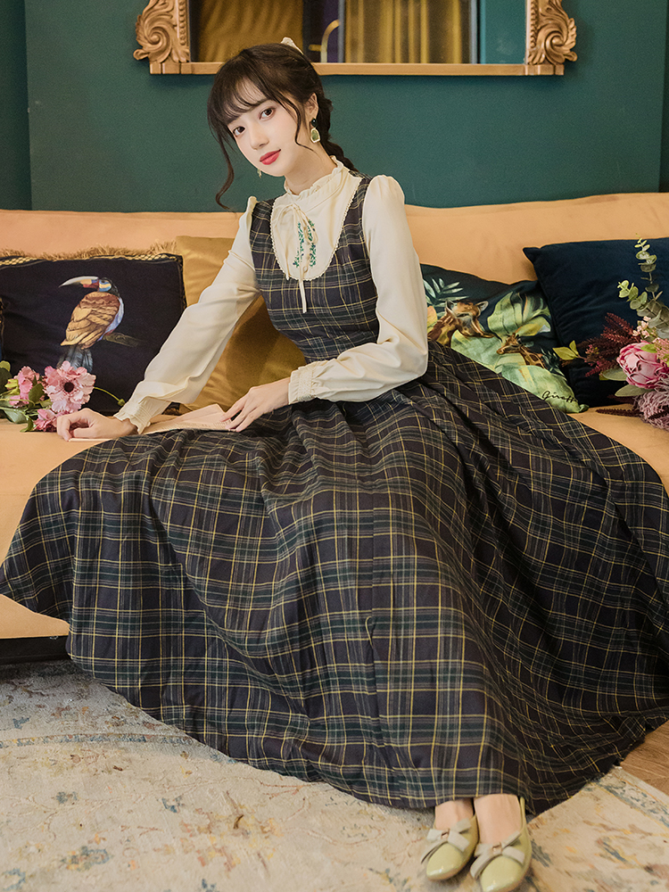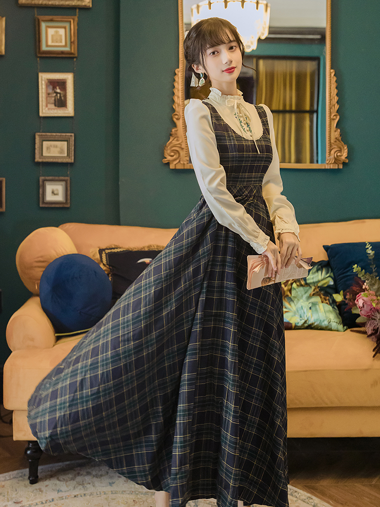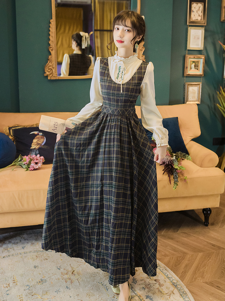 Đầm xanh caro vintage – 89k/ngày – freesz – ở CN Thủ Đức