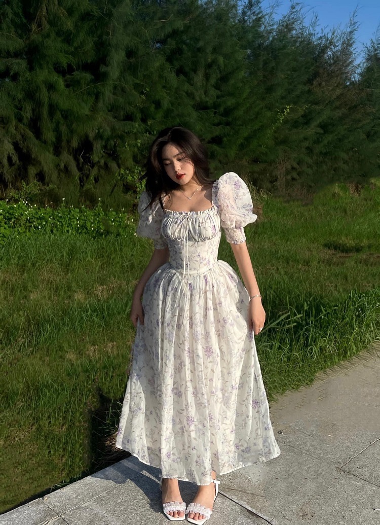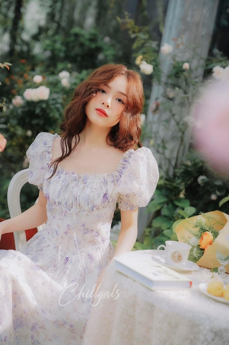 Đầm trắng hoa tiểu thư – Chillglas – 89k/ngày – S – ở CN Phú Nhuận