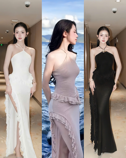 Đầm xẻ đùi viền bèo – 89k/ngày – SM