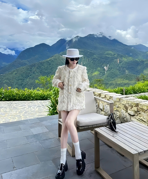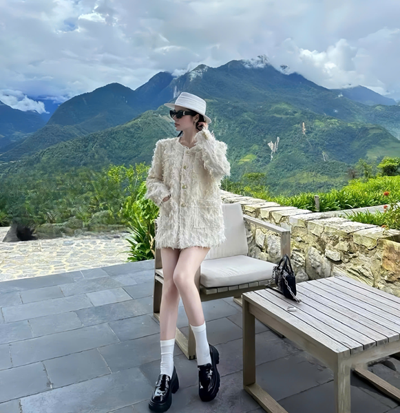 Khoác dạ kem tay dài – 89k/ngày – freesize – ở CN Thủ Đức