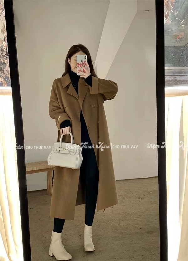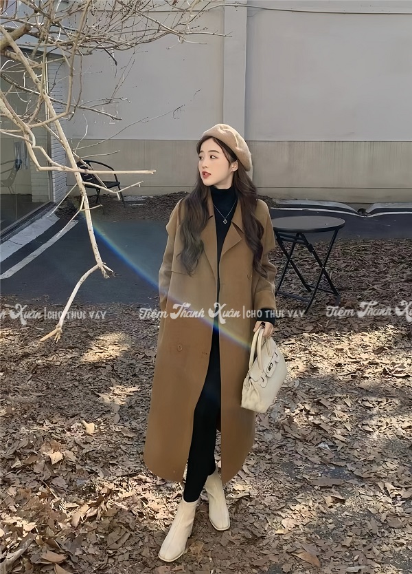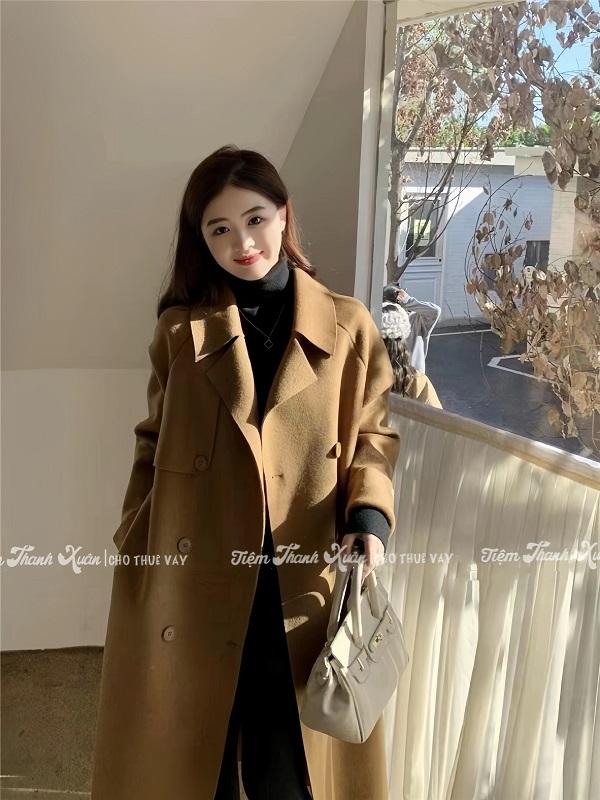 Khoác dạ nâu đính nút – 89k/ngày – freesize