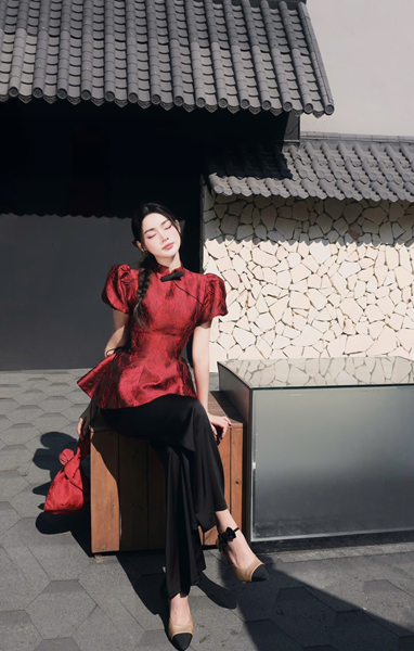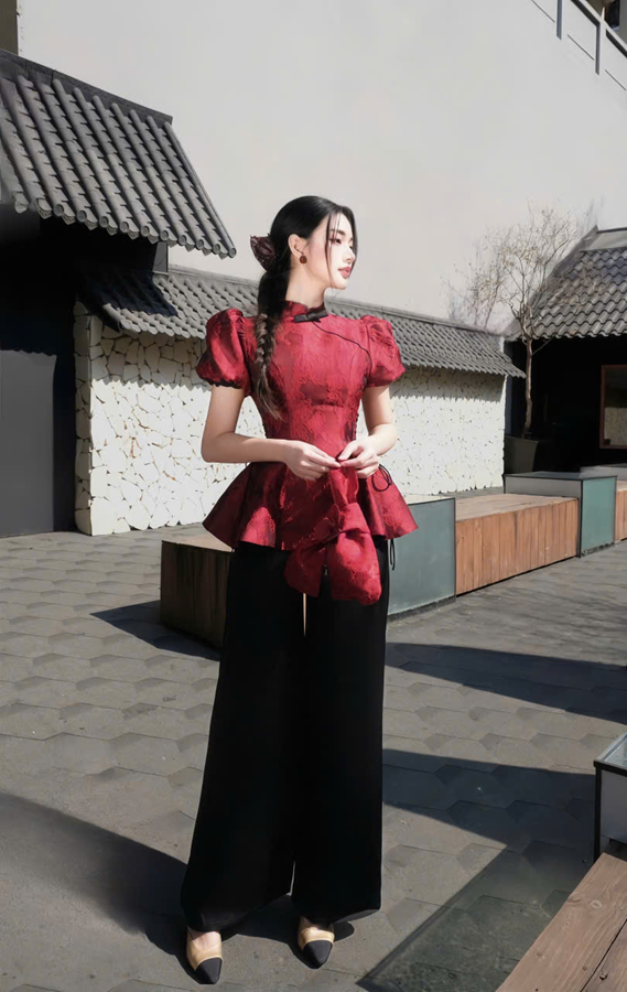 Set áo tàu đỏ thắt eo tay – 89K/ngày – SM