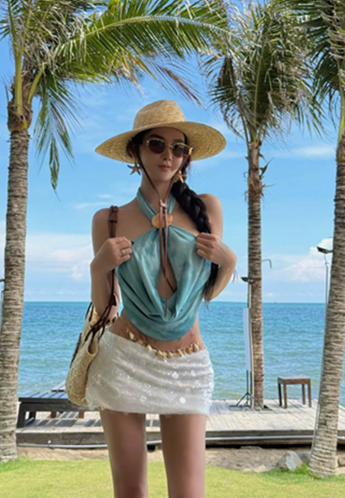 Set áo xanh hở lưng cv trắng – 89k/ngày – XS S = S M
