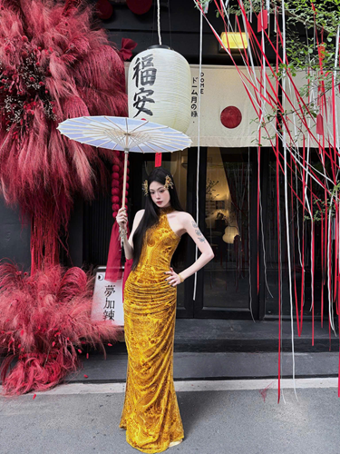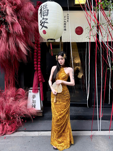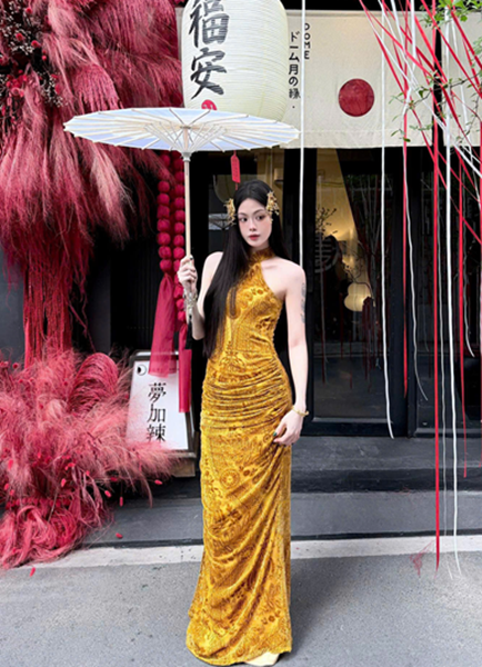 Sườn xám cam cổ yếm – 149k/ngày – SML