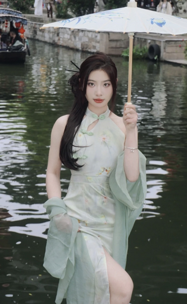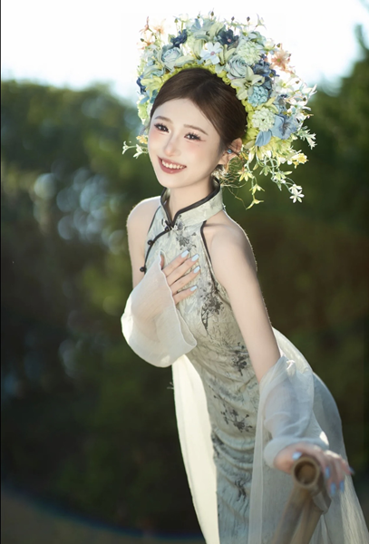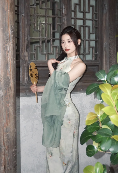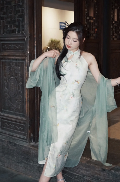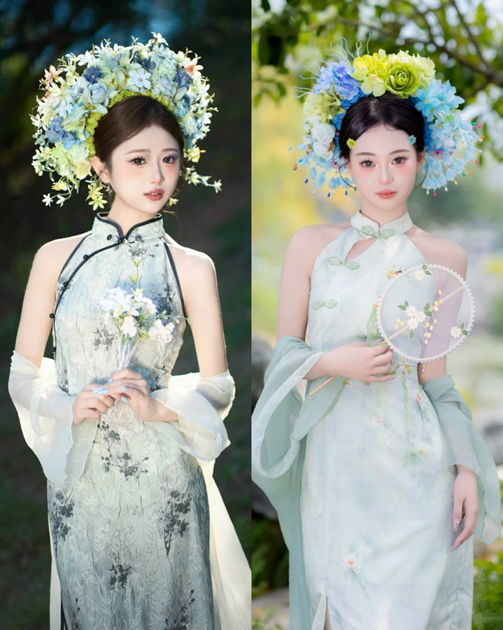 Sườn xám xanh kèm khoác – 89k/ngày – SML
